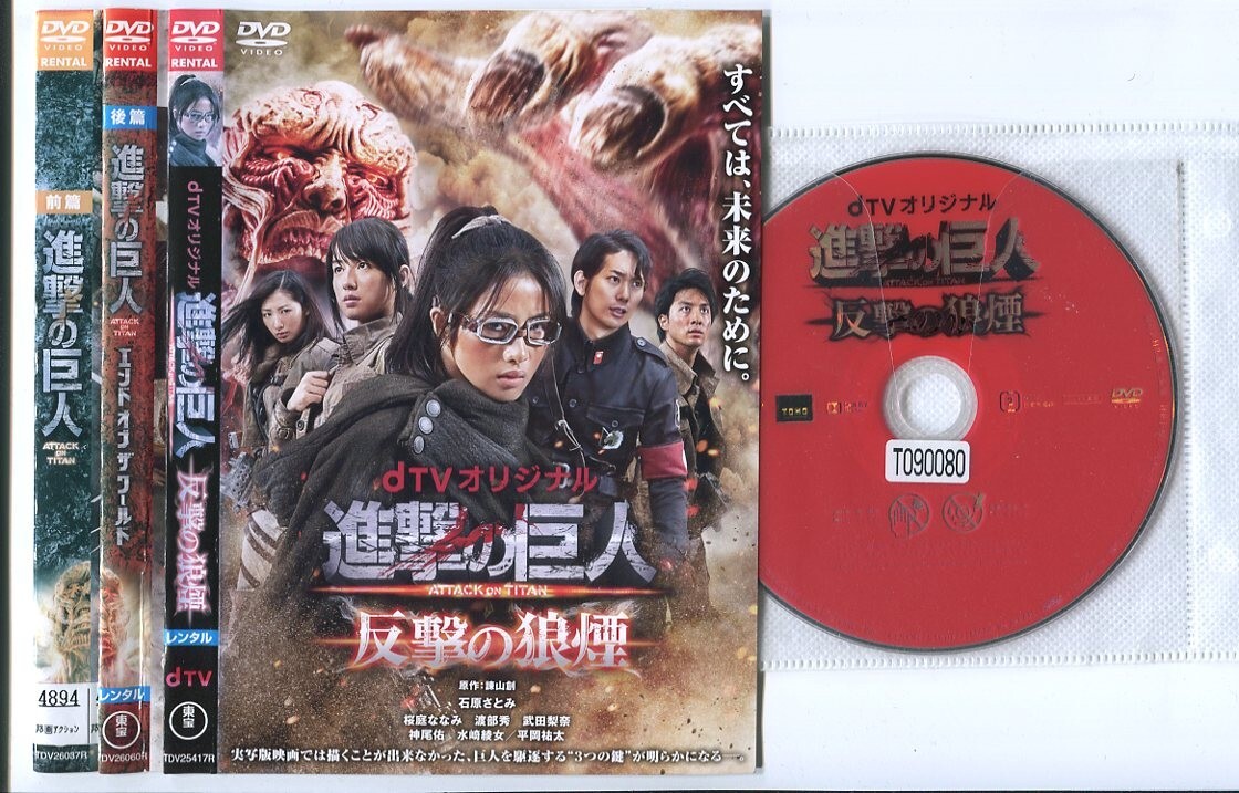 - ●A5076 R中古DVD「進撃の巨人 前後篇+dTVオリジナル 反撃の狼煙」計3巻セット ケース無 三浦春馬/石原さとみ レンタル落ち