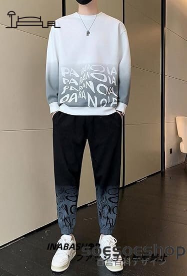- 韓国風 グラデーション ジャージ セットアップ メンズ 上下2点セット 長袖 トレーナー ジョガーパンツ トラックスーツ スポーツウェア