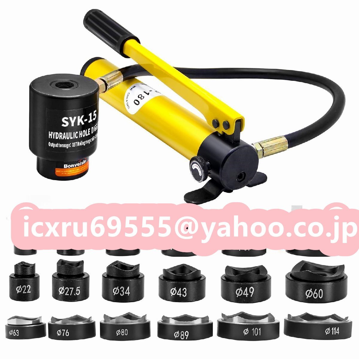 > 高品質★油圧パンチャー 手動穴あけパンチ 15トン (SYK-15(18種類金型)) ステンレス鋼 鉄板 工事 建築 工業 金型付き