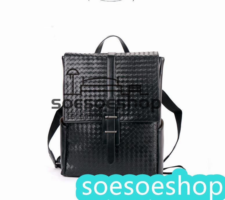 - 新入荷☆本革 牛革 リュックサック メンズバッグ バックパック ディパック 編込み 大容量 通勤 通学 ブラック