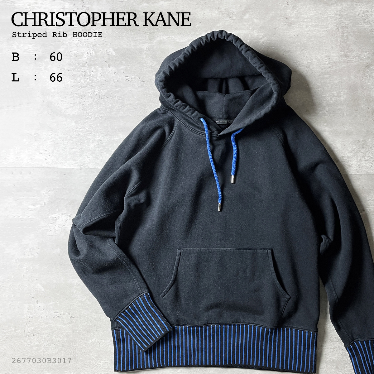 > CHRISTOPHER KANE バイカラー 厚手 ラグラン プルオーバー パーカー 黒 ブラック 紺 ネイビー 無地 クリストファーケイン メンズ L 相当