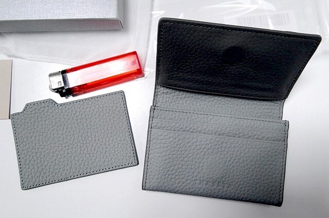 > 【未使用・本革】「THREETA 」カードケース(黒):名刺入れ くすみブルーグレイ【定形外390円/レターパックプラス600円】