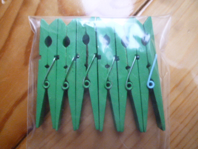 - 中古 木製ピンチ グリーン 6個セット 洗濯ばさみ 木製 ピンチ