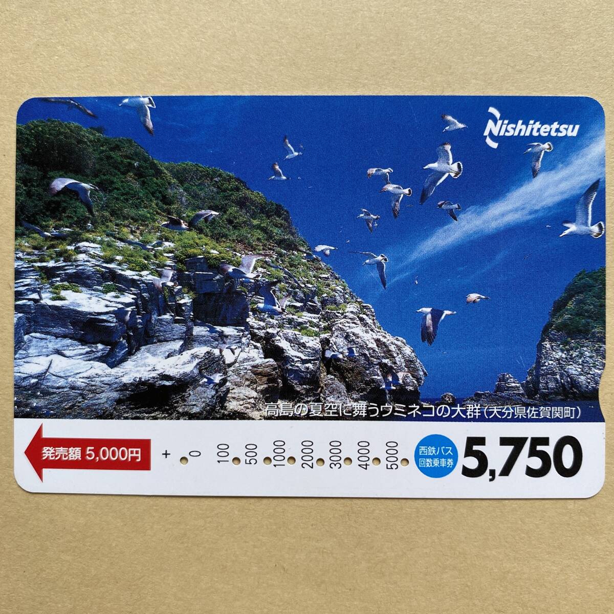 - 【使用済】 バスカード 西鉄バス 高島の夏空に舞うウミネコの大群(天分県佐賀関町)