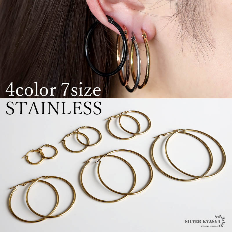 - (ゴールド、70mm) ステンレス フープピアス 大きめ 小さめ ピアス フープ つけっぱなし かわいい 両耳2点 18G
