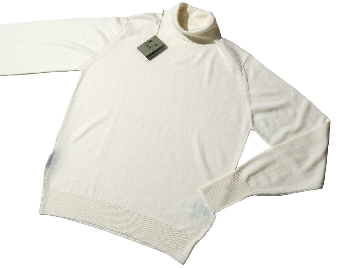 > メンズ XL ジョンスメドレー 最高級メリノウール 24ゲージ タートルネックセーター A4588 スノーホワイト JOHN SMEDLEY イギリス製★