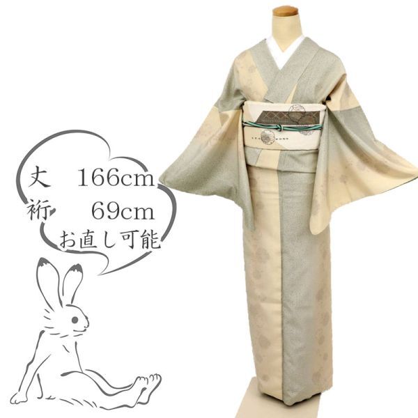 - 【紬】 長尺 重ね雪輪に舞桜 ベージュグラデーション 袷正絹着物 TY1-3