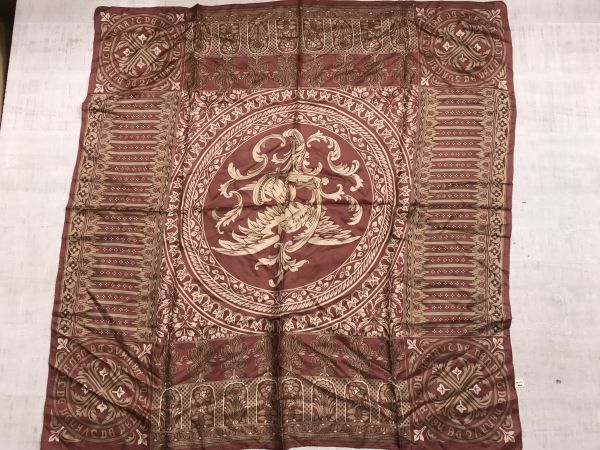 > オールド レトロ オリエンタル エレガント ボタニカル 鳳凰 フェニックス 小物 大判スカーフ レディース シルク 絹100% 日本製 エンジ