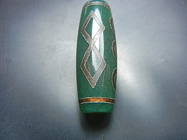 - ★西蔵至純天珠★XT9424 緑砂龍紋 金剛六眼 上級 40mm入手難