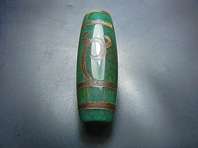 - ★西蔵至純天珠★XT9421 緑砂龍紋 度母 上級 39mm入手難