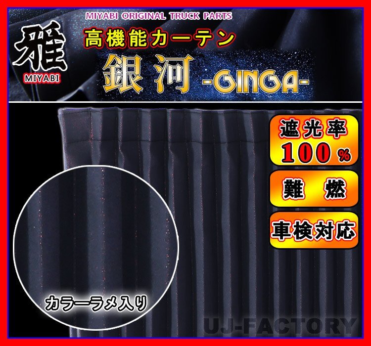 > 【MIYABI/車検対応】★ 仮眠カーテン 銀河(意匠登録済み)★ブラック×レッドラメx2枚組 汎用サイズ:2400mm× 850mm 遮光性100%