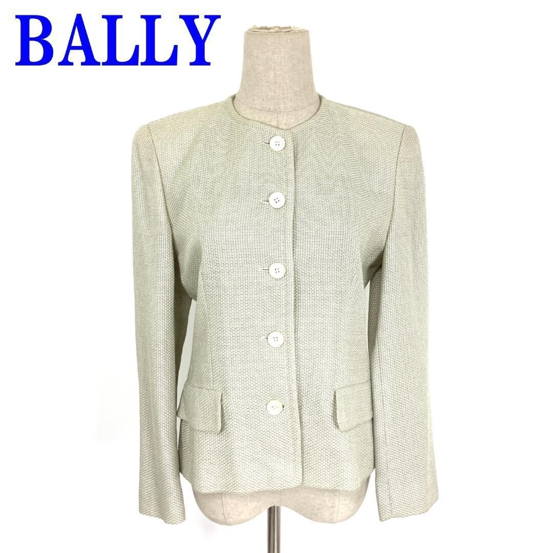 - バリー ノーカラージャケット ウール レーヨンBALLY 裏地有 ベージュ 34 C2093