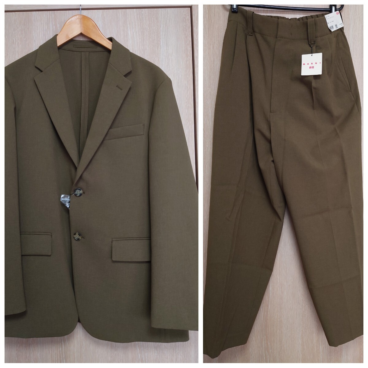 > 新品 ユニクロ マルニ セットアップ スーツ М オリーブ テーラードジャケット スラックス UNIQLO MARNI ワイドフィット シルエット