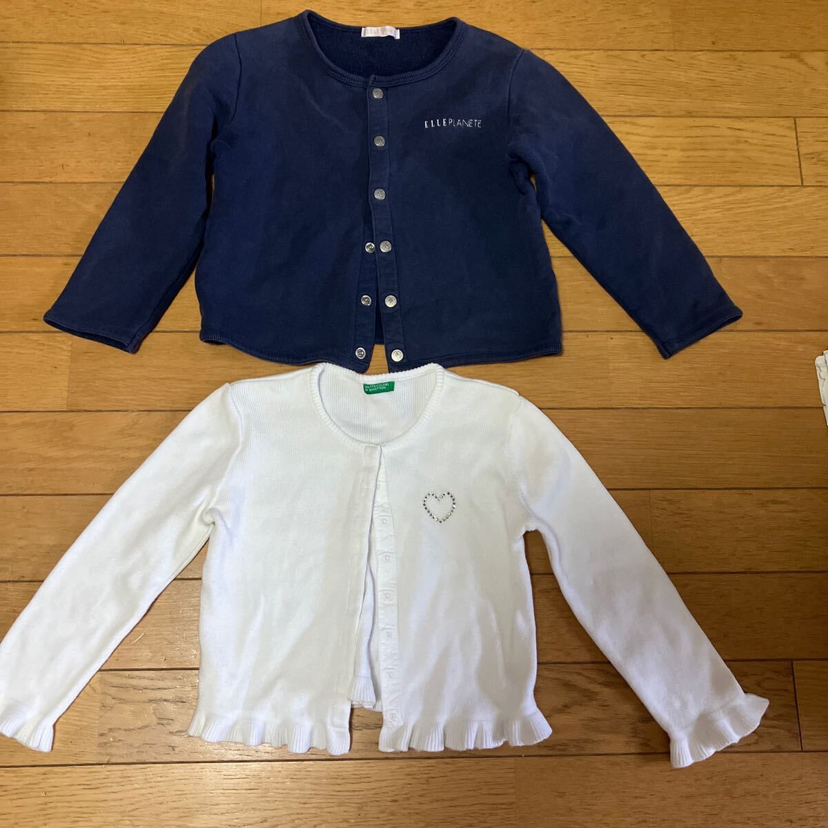 > ELLE PLANETE、エルプラネット・BENETTON ベネトンカーディガン90〜100 2点セット紺 ネイビー ホワイト 白