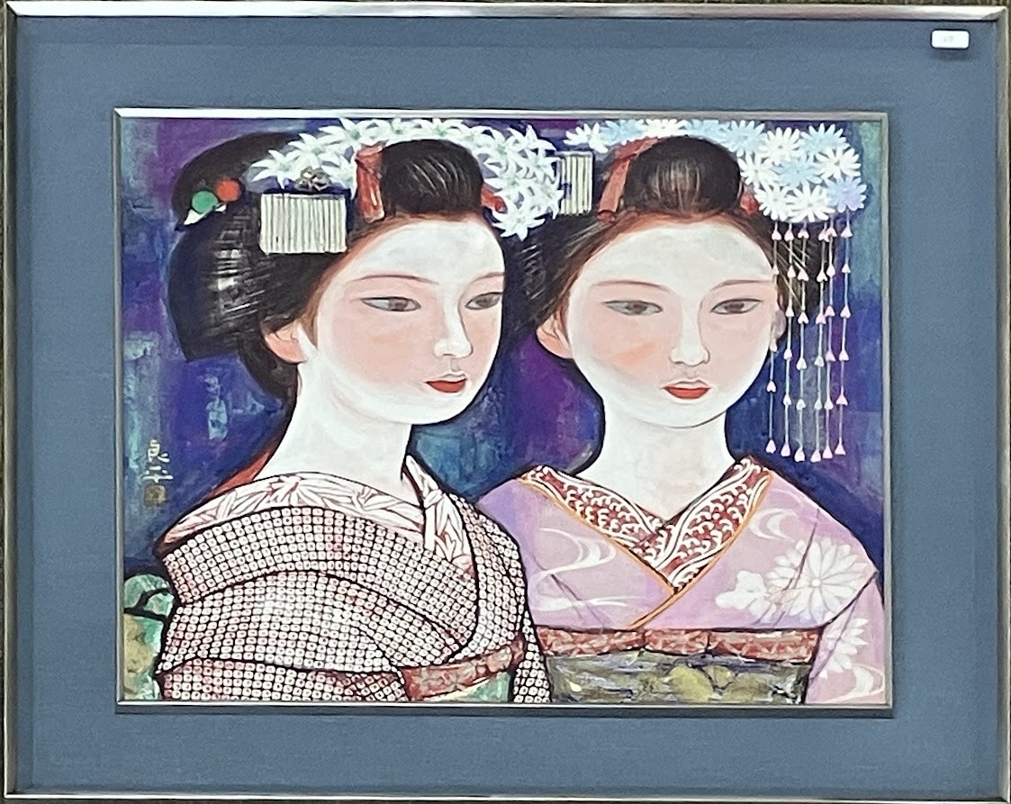 - 【真作保証】三輪良平『舞妓』 日本画 二人の舞妓名画 日展評議員 京都画壇巨匠 山口華楊師事 美人画 R7-0039