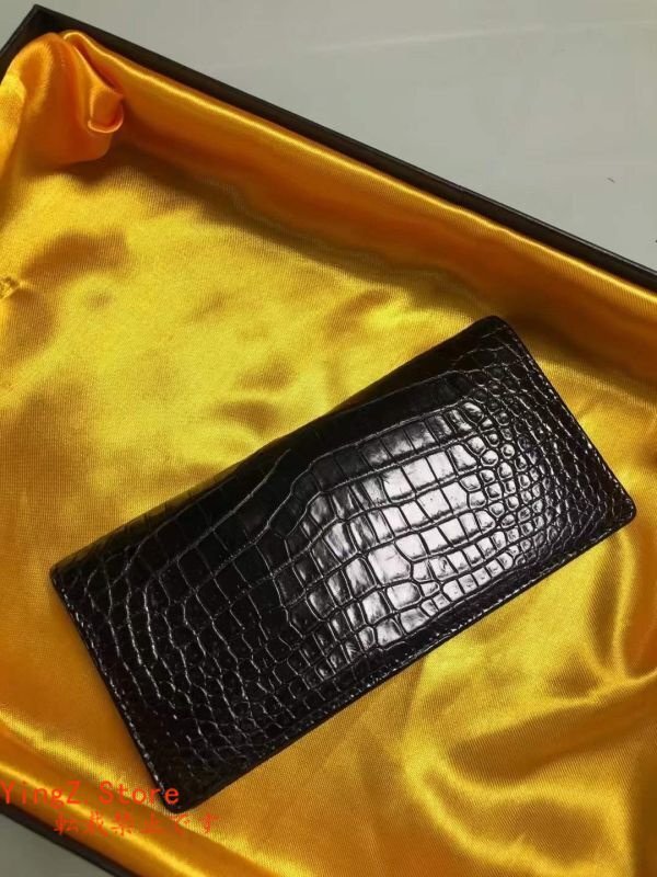 - 総クロコ クロコダイル本革 長財布 二つ折り ワニ革 本物 カード入れ センター取り 腹部革使用 ウォレット レザー財布 小銭入れなし 薄い