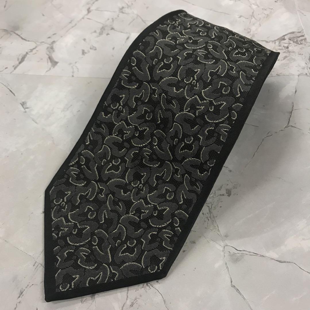 - ミラショーン ネクタイ 黒×灰 総柄 シルク 絹【n526】