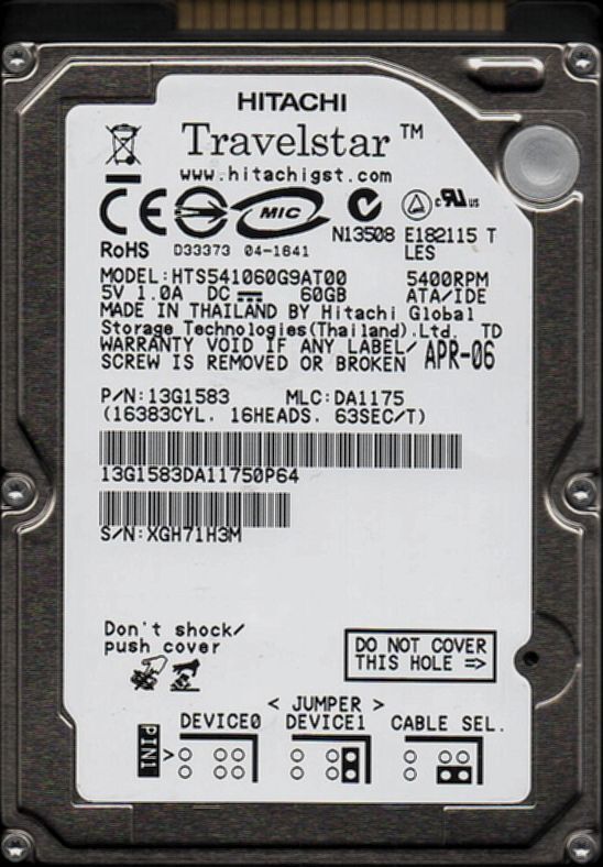 > 2.5インチ HITACHI HTS541060G9AT00 60GB ATA/IDE 5400rpm