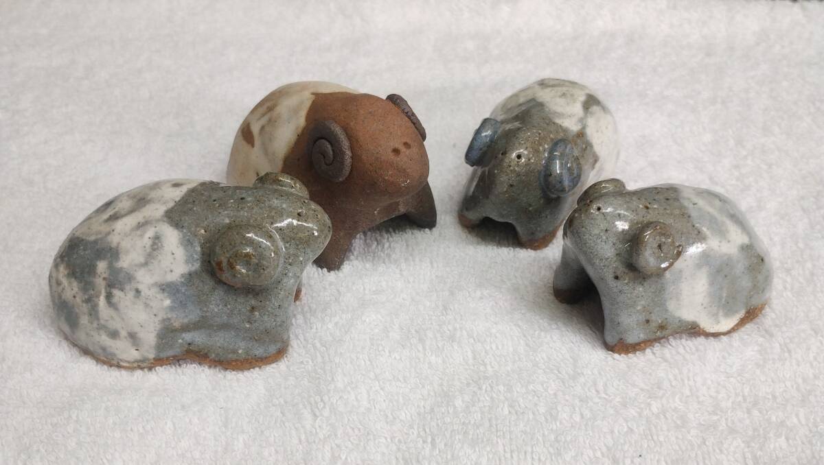 - ひつじ 置物 4体セット 焼き物 陶器 雑貨 コレクション