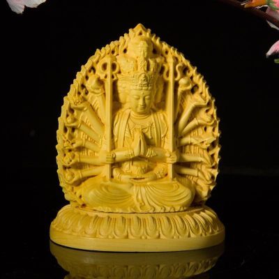 - 【十二干支お守り本尊】◆千手観音◆ 両面彫り柘植仏像 子年(ねずみどし) ナチュラル/天然木製/手作り/細工彫刻/プレゼント/開運風水厄除け