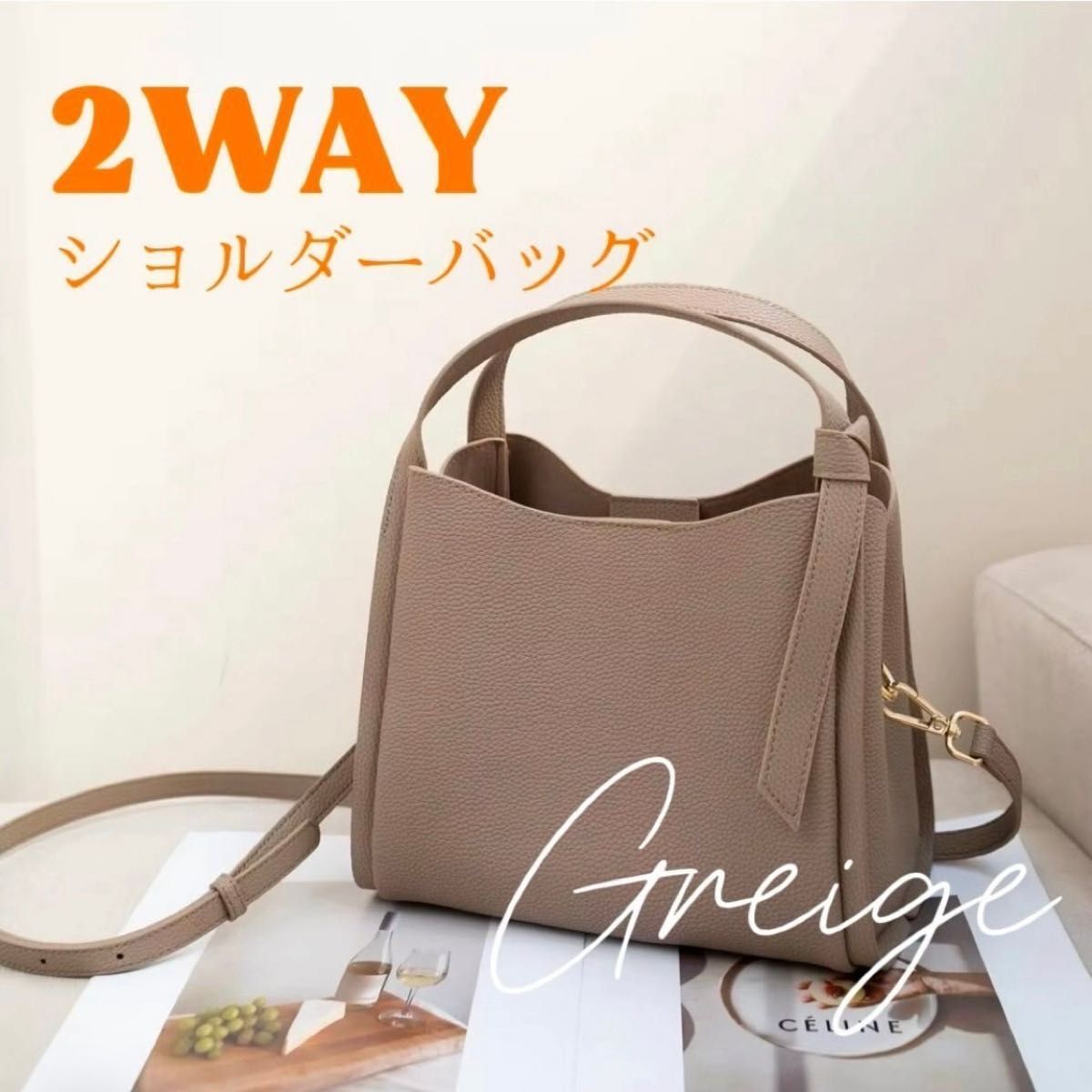 - ハンドバッグ ショルダーバッグ 2way レザー 肩掛け スクエア グレージュ