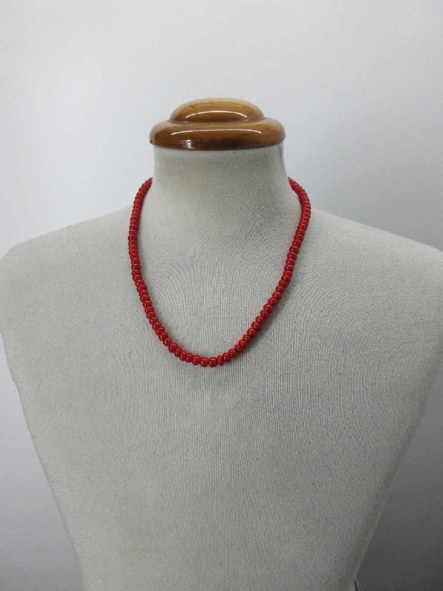 - 鹿革 ネックレス 赤ビーズ ホワイトハート インディアン ネイティブ sy3147