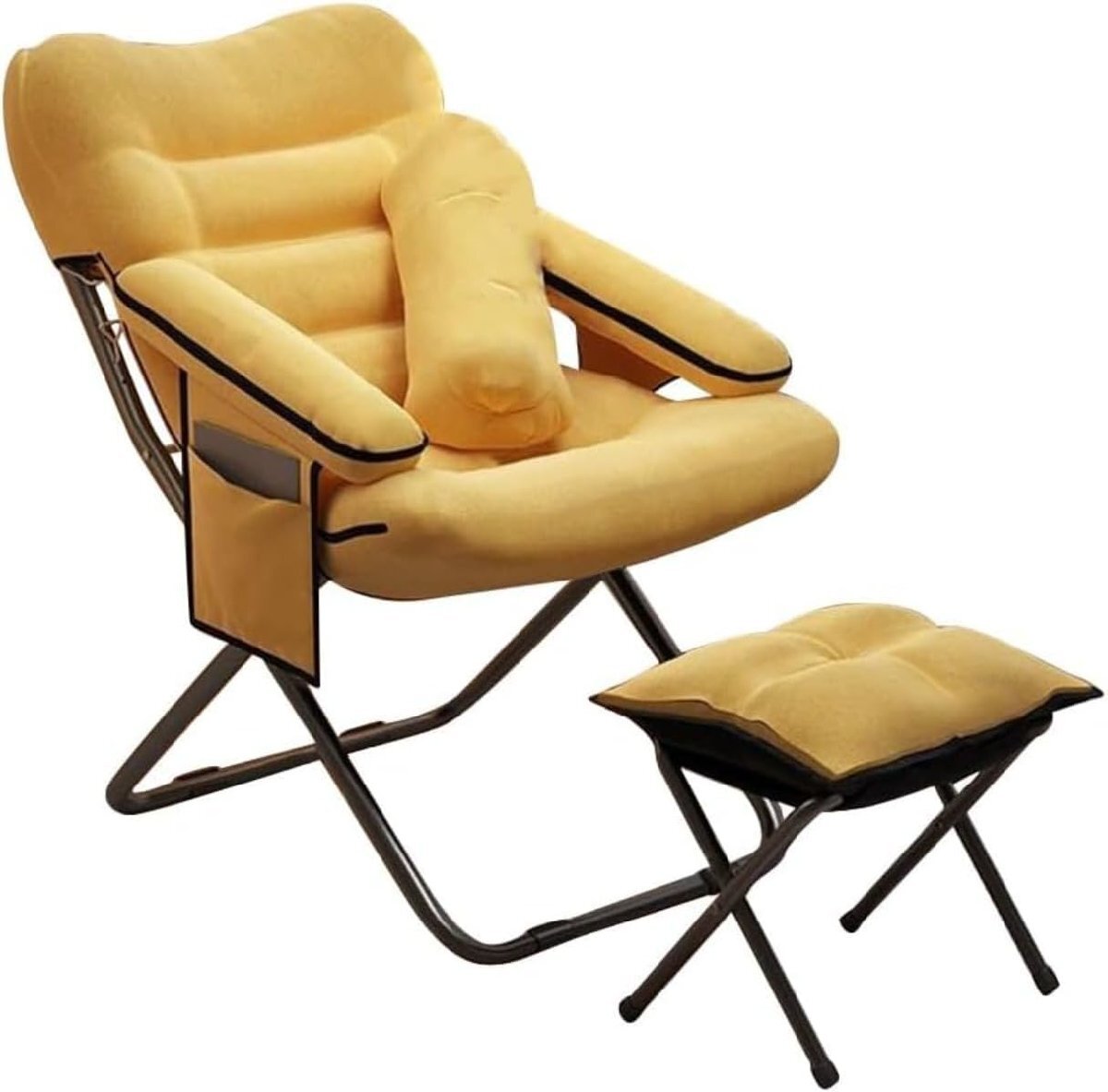- リクライニングチェア 折りたたみチェア アウトドアチェア リラックスチェア 角度3段階調節 (黄です,単椅子です+抱きまくら+足台)