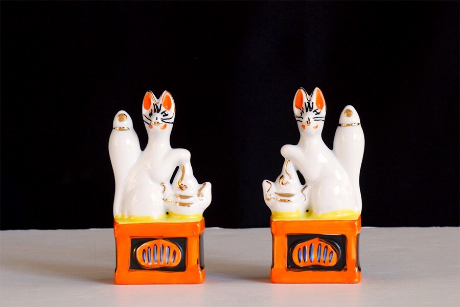 - 神棚用■お稲荷 お狐様■橙■一対 4寸サイズ 高さ12.5cm 【中】