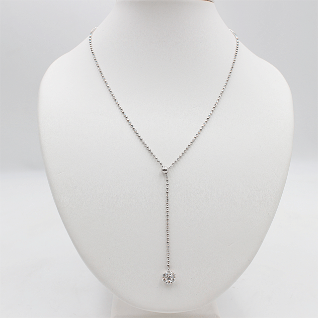 - K18WGネックレス メレダイヤ花柄デザインペンダント付 1.00ct 10.3g 約29cm