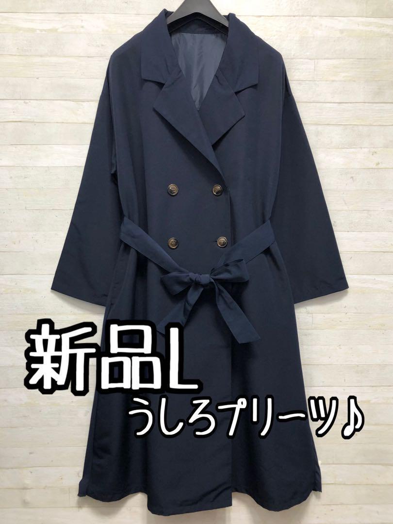 - 新品☆L♪紺系♪後ろプリーツでオシャレ♪ゆったりトレンチコート〇G466