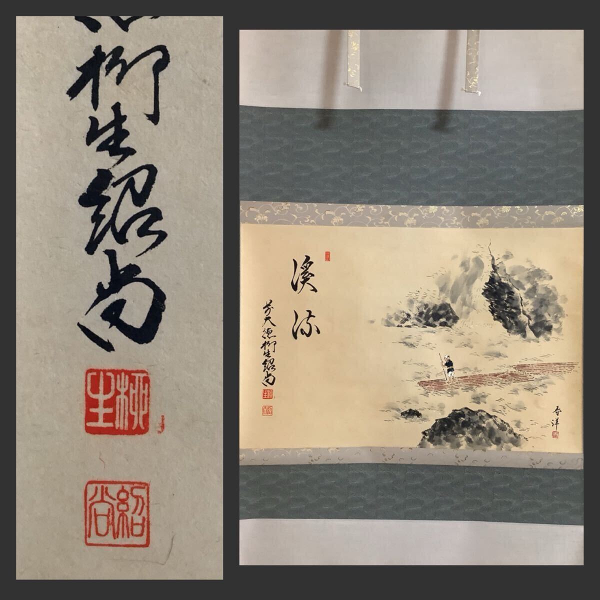 - 【模写】掛軸M733BL[橋本紹尚賛 春洋画 渓流画賛]彩色紙本 書いたもの 共箱/仏画 仏教 臨済宗 前大徳 柳生芳徳寺 花押印