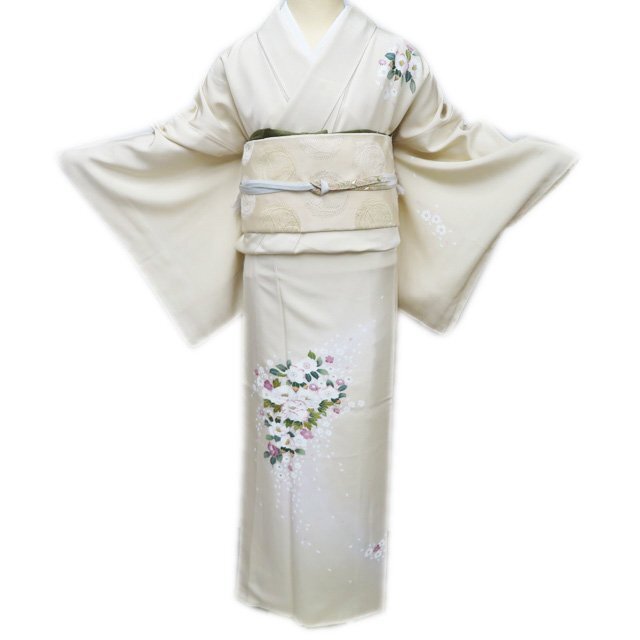 > 付下げ 付け下げ 訪問着 着物 中古 正絹 袷 フォーマル 花の図 暈し 砥粉色 多色 身丈167cm 裄68cm L トール きもの北條 A1158-10