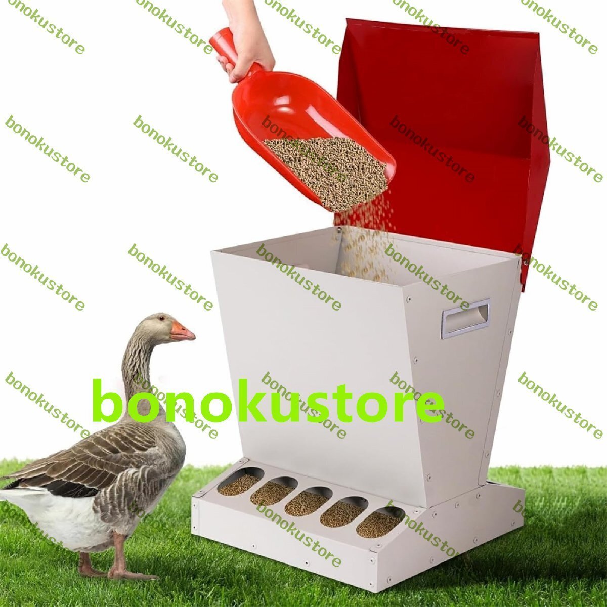- 11KG 自動鶏フィーダー ステンレス製の蓋付き 10穴屋外家禽フィーダー 便利なオンデマンド給餌で無駄がなく チャボ キジ ウズラの繁殖