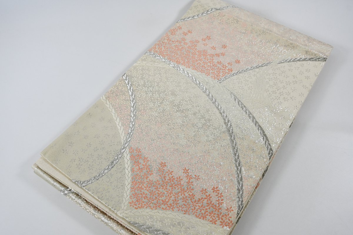 - 袋名古屋帯 六通柄 銀糸 花 帯丈414cm ★着物屋 ne-14424 桜庭呉服店