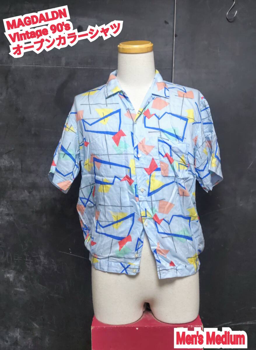 > ★送料無料★ MAGDALDN シャツ 90's ヴィンテージ デザインシャツ メンズ オープンカラーシャツ サックスブルー Medium