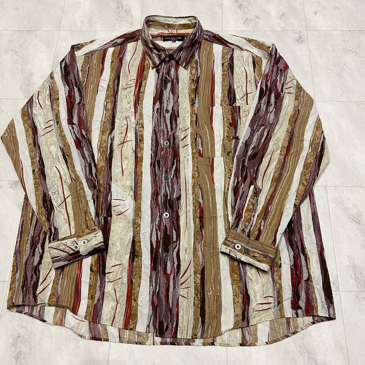 > Guy Laroche Paris 総柄 柄シャツ マーブル レトロ アート ビンテージ 長袖シャツ ポリエステル100% size2L