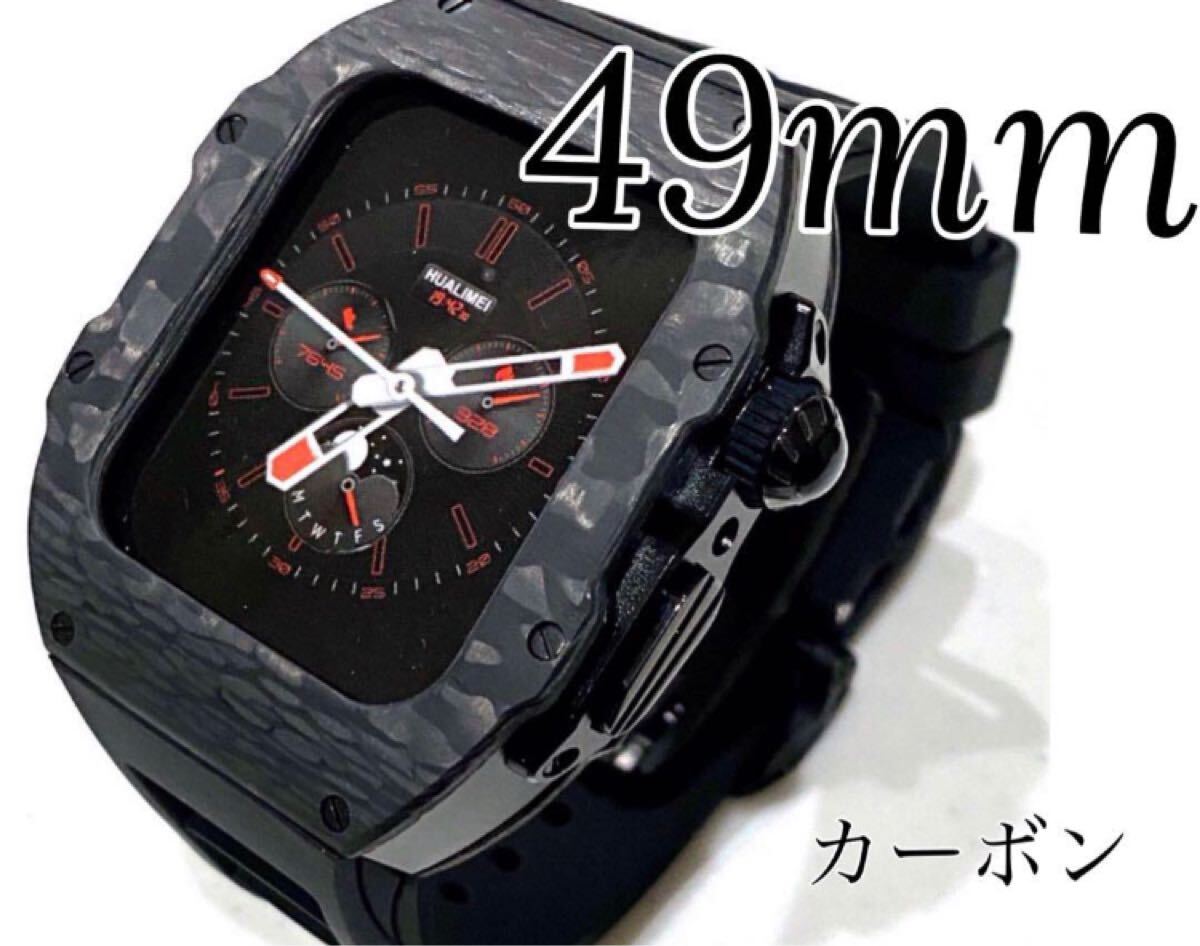 - 希少 49mm カーボン ブラック apple watch カスタム ケース ラバーベルト バンド 44 45 46 49