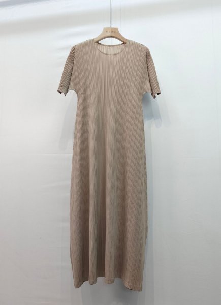 > 2503レディーストップスプリーツpleats半袖ワンピース弾力が肌触りドレープ性がいいシンプル大人可愛いブラウン系