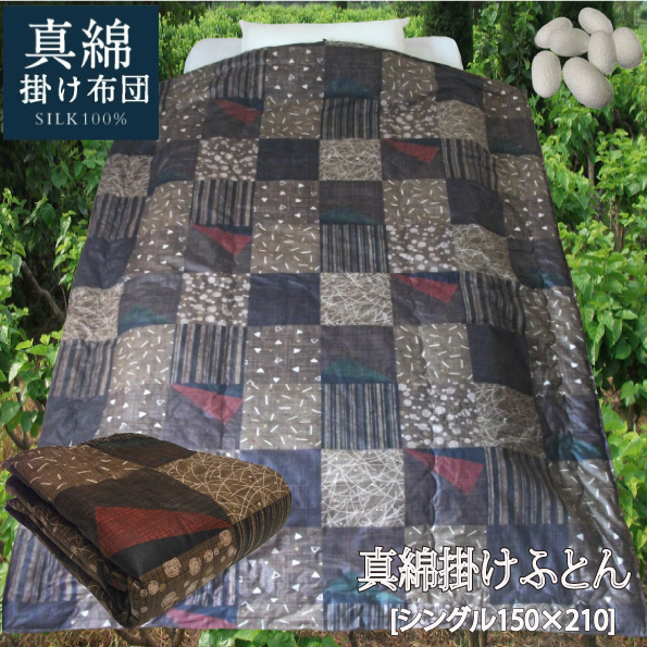 - 手引真綿ふとん シングル 150×210 ブラウン