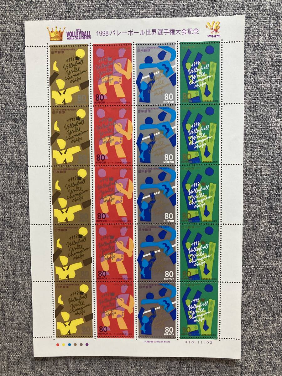 - ★未使用 1998 バレーボール世界選手権大会記念 サーブ レシーブ トス アタック ブロック 1998年 平成10年 切手シート 80円 20枚 日本郵便