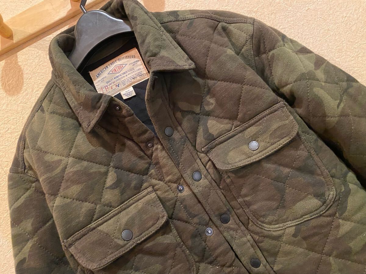 - ANERICAN EAGLEキルティングダウンジャケットシャツ迷彩カモフラージュアウターインナーサバゲーアウトドアバイカーバイク乗りヴィンテージ