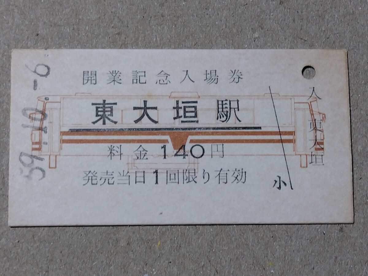 - 250315-11【樽見鉄道きっぷ】A型硬券 東大垣駅 開業記念入場券 昭和59年