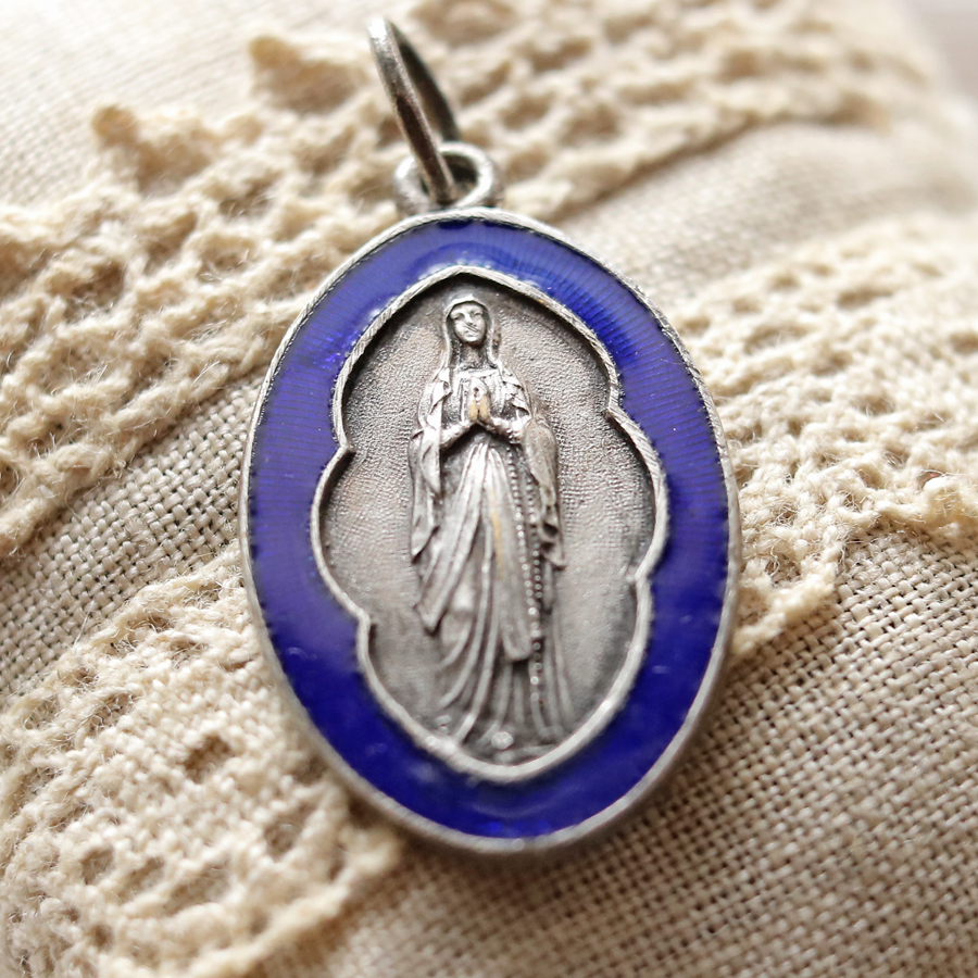 > フランス アンティーク 【ルルドの聖母マリア】 青いエナメル メダイ インマキュラータ/LOURDES メダル ロザリオ キリスト マリア 教会/B