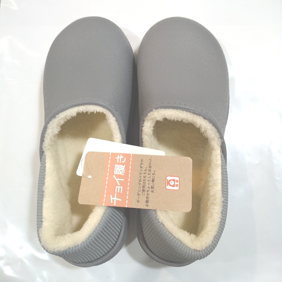 - かかと付き ボア サンダル M レディース グレー 軽量 防寒 防水 外履き ルームシューズ ルームサンダル