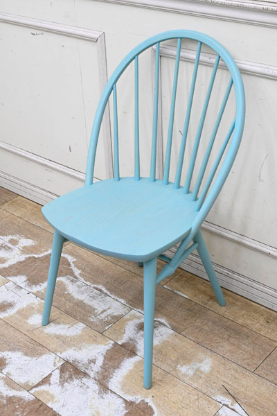 > NZ032 超美品 飛騨家具 柏木工 水色 ブルー レイチェア ウィンザー ダイニング 食卓椅子 北欧スタイル ウインザーチェア ボーバックチェア