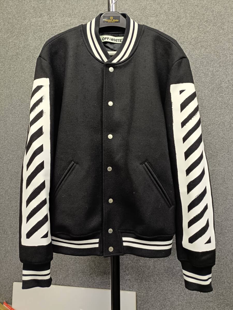 - ★OFF-WHITE オフホワイト BRUSHED DIAGONALS VARSITY バック掠れバイアステーププリントスタジアムジャケット sizeL