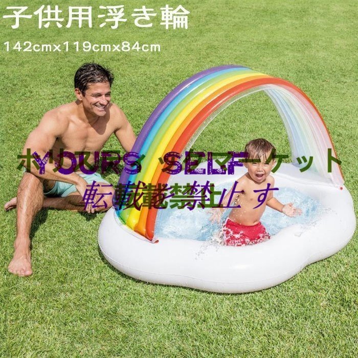 - 浮き輪 大人用 フロートベッド レインボー 浮き輪 ファンタジー ポンプ付き2点セット リゾート ビーチ 海水浴 プール でインスタ映え抜群
