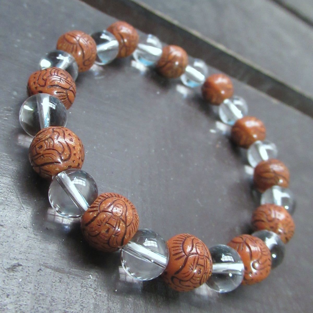 - 観音菩薩ビーズx水晶ブレスレット 天然石 パワーストーン