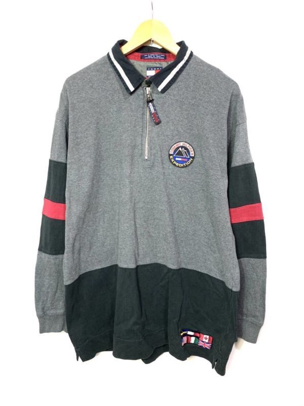 > ■レア 90s 90年代 ビンテージ TOMMY HILFIGER トミーヒルフィガー OUTDOORS EXPEDITION ハーフジップ プルオーバー ラガーシャツ L■