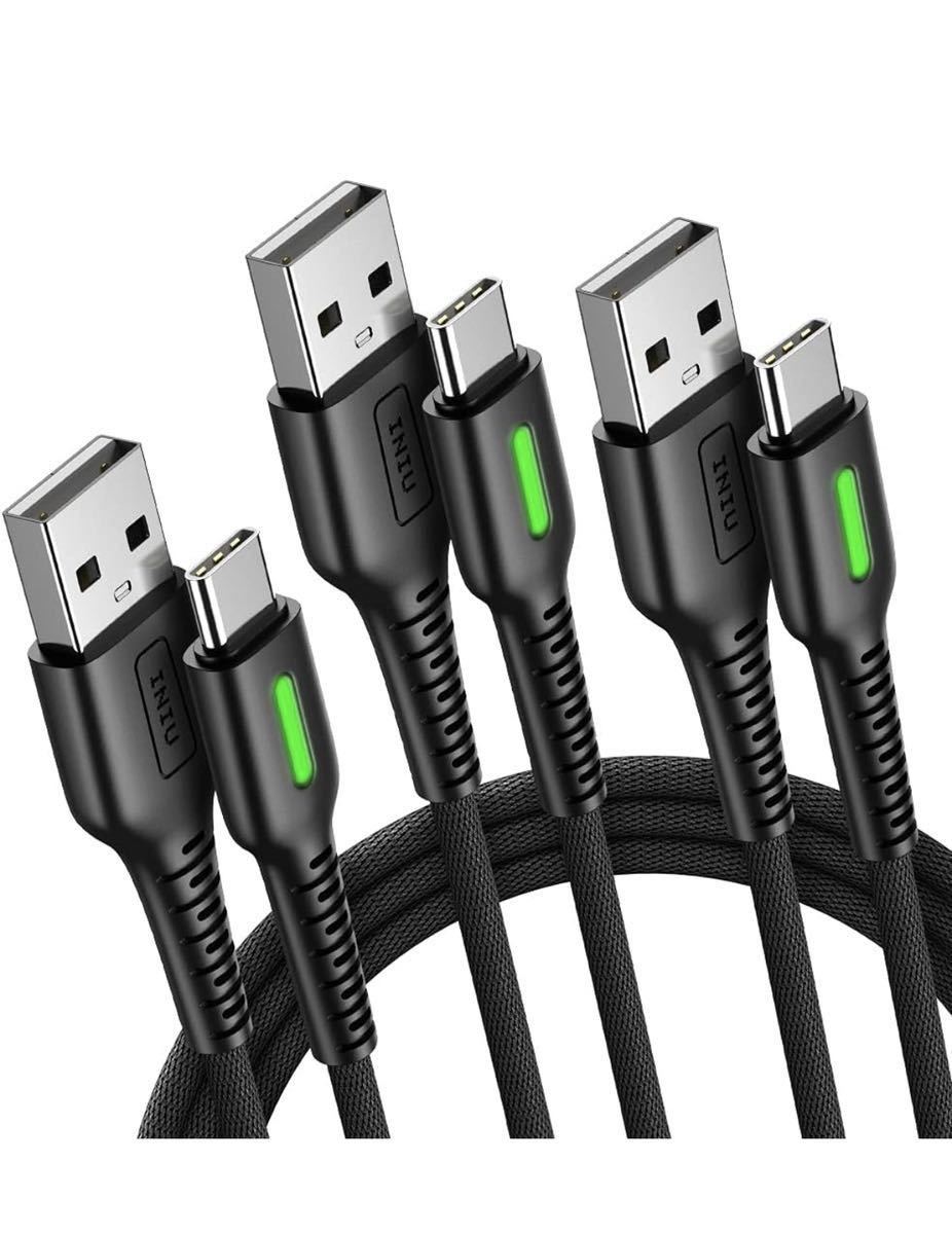 - USB Type C ケーブル【3本 0.5m+2m+2m】INIU 3.1A USB-A to USB-C 急速充電 QC3.0対応 高速データ転送 高耐久ナイロン編み